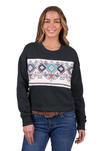Heavyweight brushed fleece crew; shorter length fashion style; rib trim hem; cuffs and neck band; Pure Western logo pip on side seam